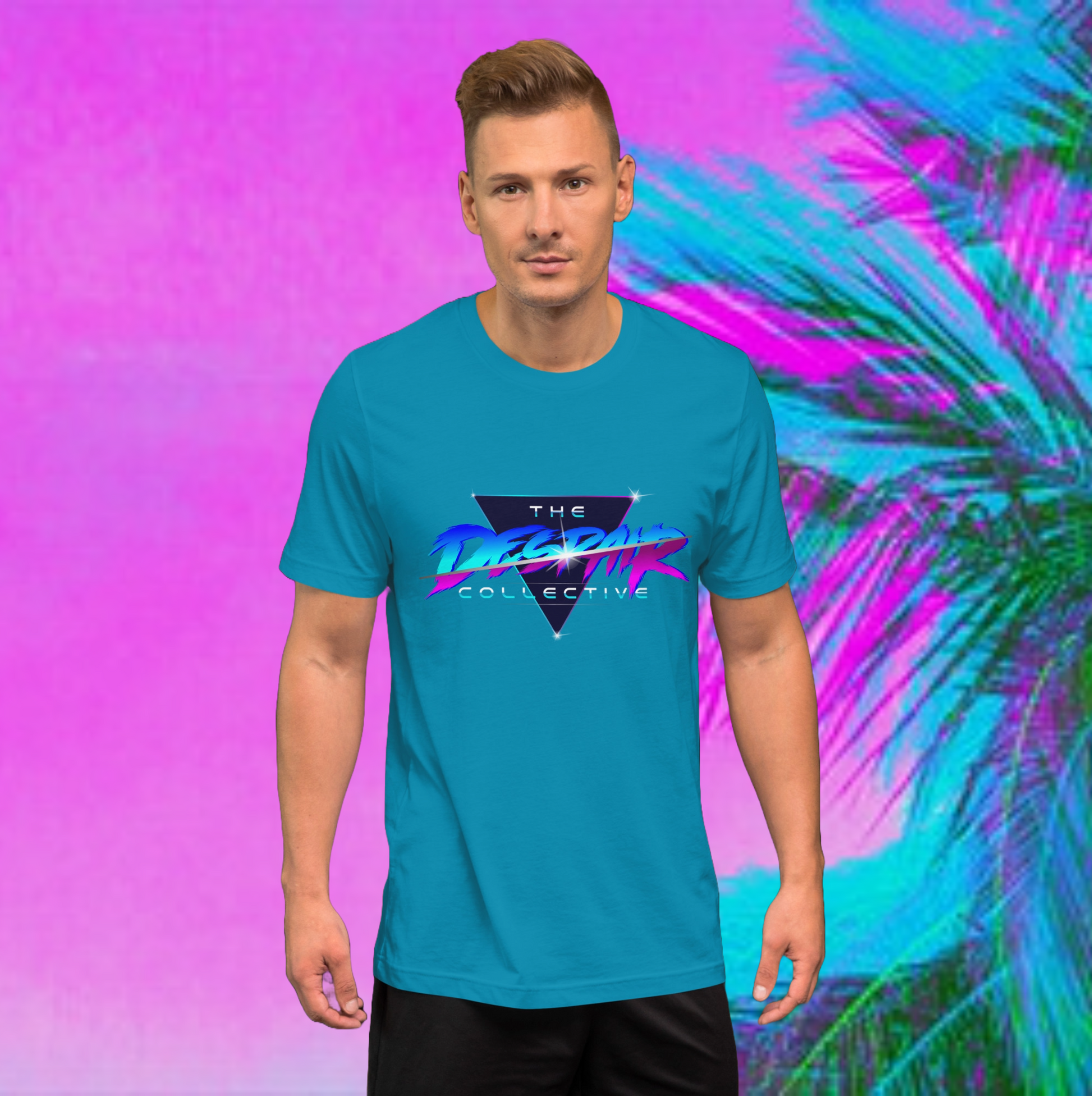 Join The Collective with The Despair Collective's "Logo" T-shirt, inspired by the neon-soaked vibes of the 1980s. This shirt features a distressed graphic with a vintage synthwave aesthetic—complete with the band's name.